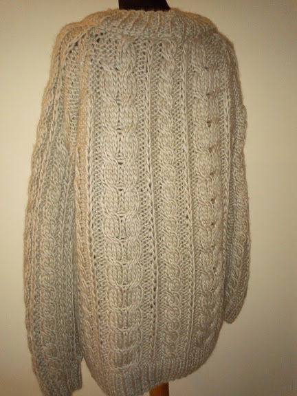 Beżowy długi sweter z włóczki Wool 100 % wełna